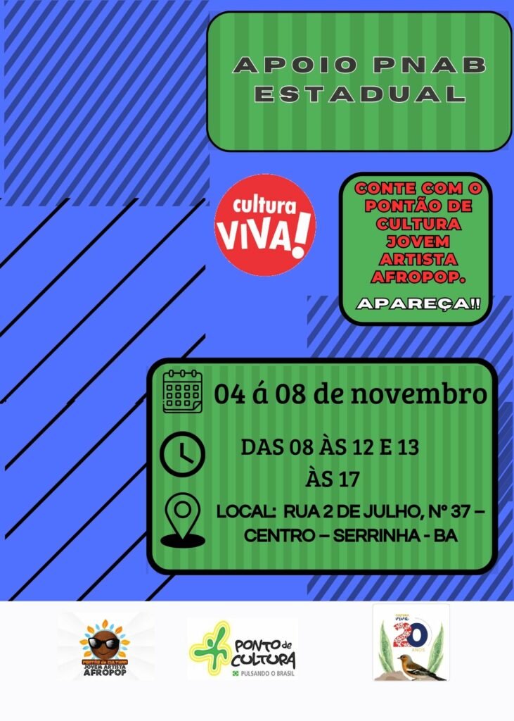 🎭✨ No dia 30 de novembro, nosso Pontão de Cultura Jovem Artista Afropop foi palco de um encontro inspirador! Reunimos o Comitê Gestor e nossos agentes culturais para um dia cheio de trocas, dinâmicas criativas e aprendizado. 💬🎨 Foi um momento de fortalecimento, união e planejamento para continuarmos a impulsionar a cultura e a arte […]